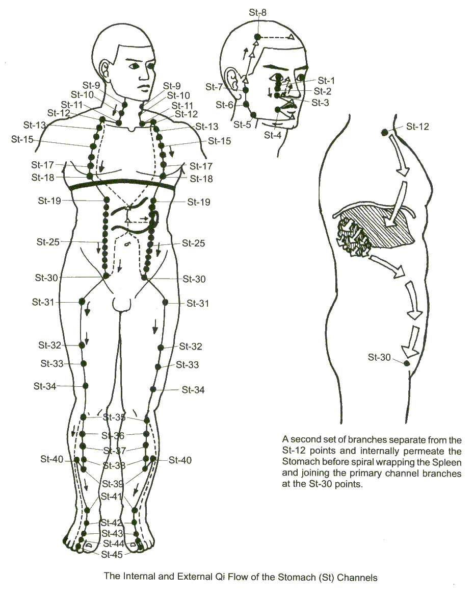 So you have these rivers or streams in your body that specifically carry Qi, aka Energy. Along these rivers are points where said energy accumulates. These points can tell us a lot about what is happening in that river, those points also affect other parts of the body via streams and estuaries that connect to other places.